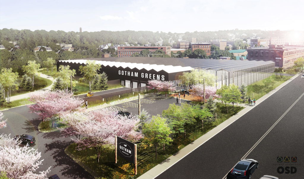 Photo at top: Pictured is a rendering of Gotham Greens’ forthcoming 110,000-square-foot high-tech greenhouse farm. Photo: Gotham Greens